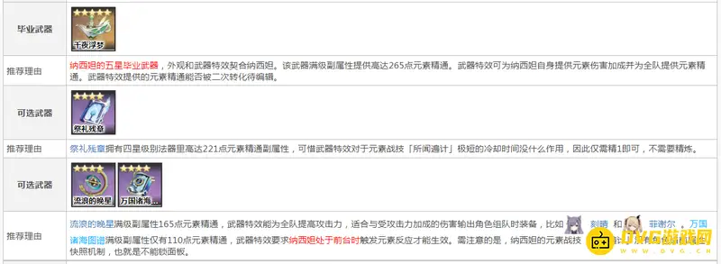 二、选择增加元素精通的武器,如五星武器千夜浮梦,四星武器祭礼残章、流浪的晚星、诸海图谱等。