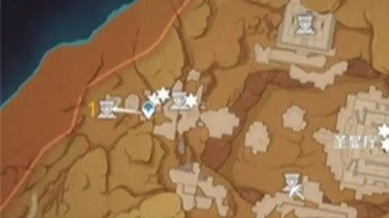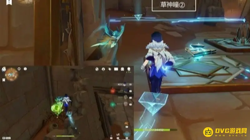 草神瞳①:传送锚点,往旁边门柱爬上遗迹大门,在雕像旁。
