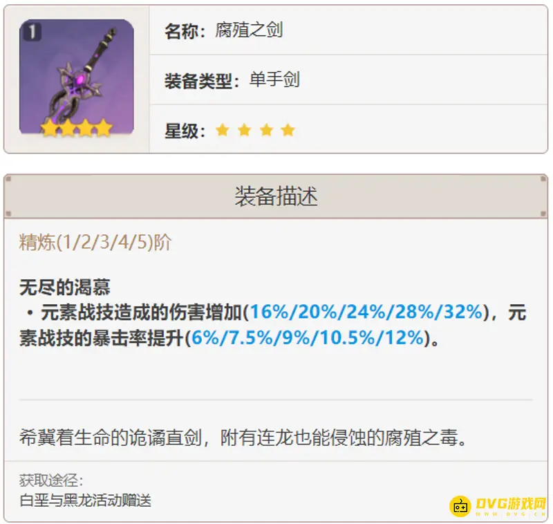 腐殖之剑:满级的腐殖之剑可以提供不俗的攻击力加成并且可以提供很高的元素充能效率,很符合班尼特的需求。腐殖之剑是活动获取的武器,容易获取,只需要打满活动即可精炼到满级,轻轻松松。