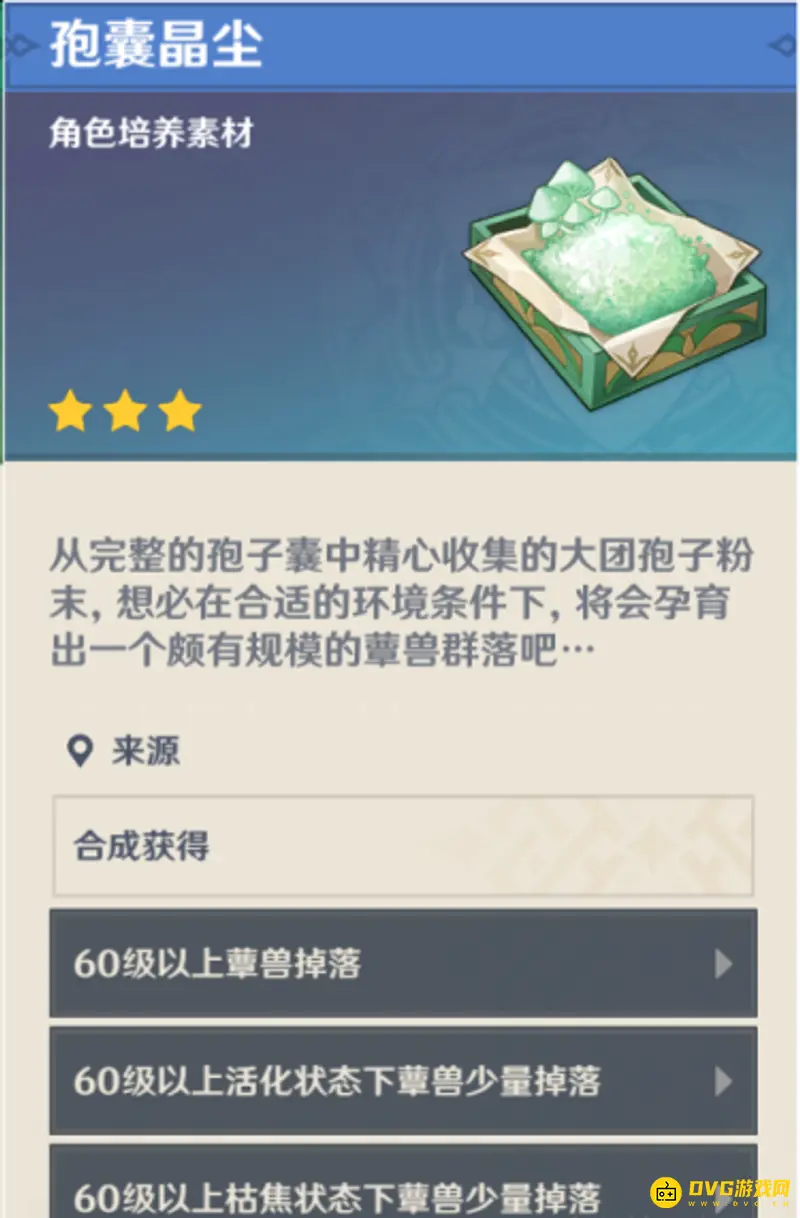 想要刷孢囊晶尘,必须用【火元素和雷元素以外的元素】打蕈兽,也就是用【水/草/风/岩/冰元素】打蕈兽都能刷孢囊晶尘。因为蕈兽在死之前,如果被雷元素或者火元素附着,会进入活化/焦枯状态转变为精英怪物,从而降低孢子的掉落概率大量掉落菌核。