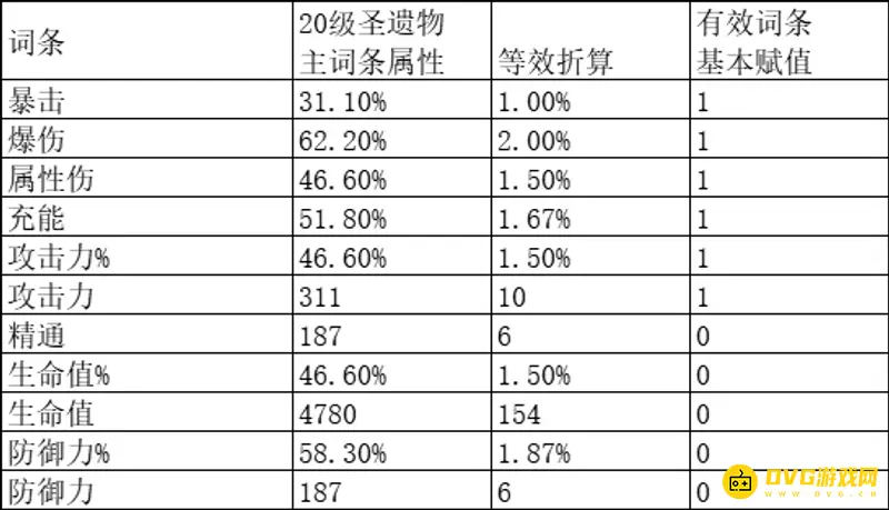 根据暴击率、爆伤、充能、属性伤和攻击力折算圣遗物评分。大部分角色的圣遗物评分计算方法:每1%暴击率算1分,每2%爆伤算1分,每1.67%充能算1分,每1.5%攻击力算1分,每10点攻击力算1分。如果不打元素反应,精通为无效词条,评分为0;大多数输出角色的生命、防御都不加伤害,为无效词条,所以生命、防御的评分为0。