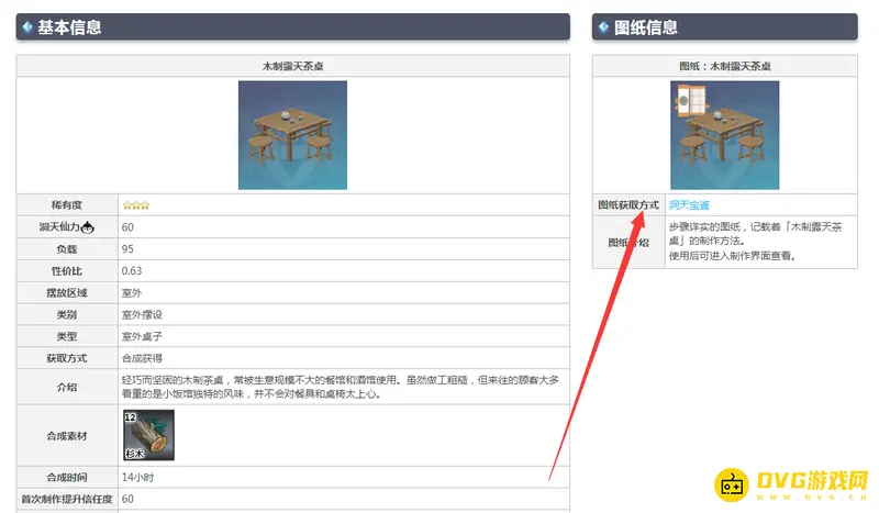 原神的木制露天茶桌图纸在洞天宝鉴获得。木制露天茶桌是稀有度为三星的室外摆设,图纸获取方式是洞天宝鉴。