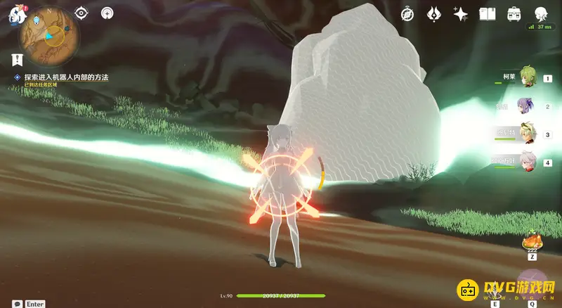 5、仙灵会进入一块石壁,然后我们将遗迹巨像的攻击引导至石壁后便会会击破石壁。