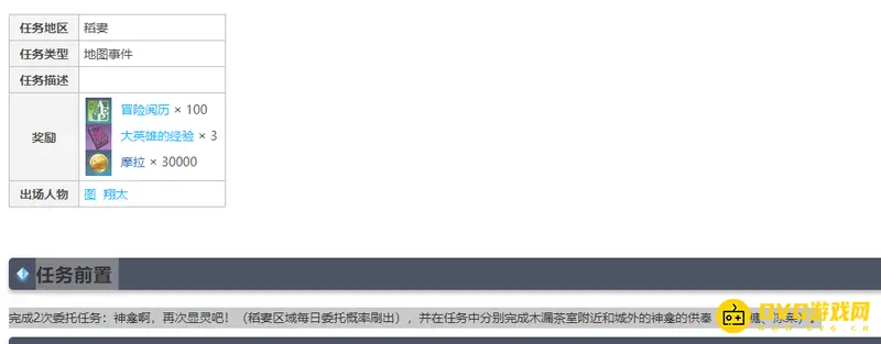 任务奖励,包括冒险阅历100点、大英雄经验书×3、摩拉30000。任务前置:完成2次委托任务:神龛啊,再次显灵吧!(稻妻区域每日委托概率刷出),并在任务中分别完成木漏茶室附近和城外的神龛的供奉(金平糖、凉菜)。