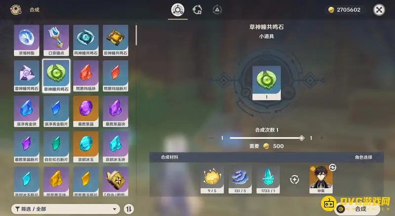 6、图纸拿到后准备好所需材料就可以到各大城区的合成台来合成了,需要注意的是目前游戏中有风神瞳共鸣石,岩神瞳共鸣石,雷神瞳共鸣石以及草神瞳共鸣石四种,这四种共鸣石都是需要通过提升各地区的声望等级后才可以领取到合成图纸,玩家拿到各个神瞳共鸣石的图纸后都可以在合成台处通过合成来获得对应的神瞳共鸣石。
