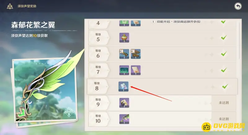 5、领取声望等级8级的奖励,获取草神瞳共鸣石的合成图纸。