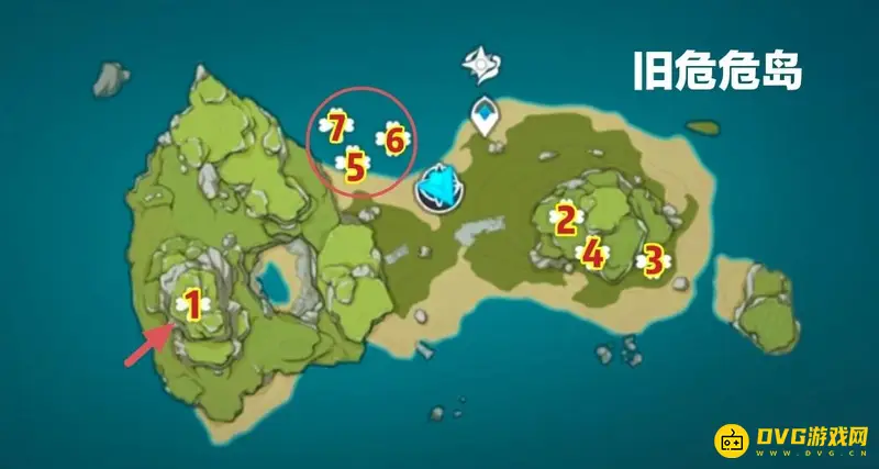 2、旧危危岛有7个星光凝核(位置如下),其中5~7三个在新危危岛也能获得