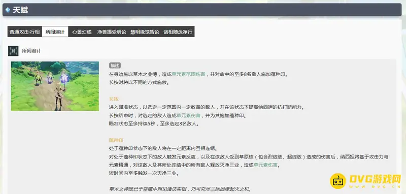 元素爆发也是一个脱手的领域技能,在其中可以减少印记的伤害以及触发的频率伤害还是不错的,并且印记的触发的频率增加后那么挂草的效率也是会提升的,而且大招的范围非常的大,是比柯莱要优秀的。