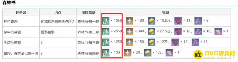 其中冒险经验最多的是梦中的苗圃任务,其他奖励最多的也是梦中的苗圃任务。