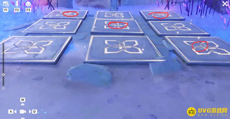 2、有对找图使能够找到的,不想自己解谜的,可以直接按照这个图中的红圈砖块来踩亮,这样就能够完成这个任务的解谜了。