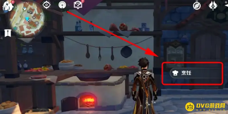 1、打开《原神》,找到可烹饪火源,进入烹饪界面。