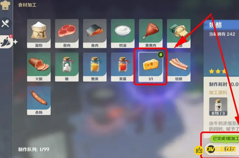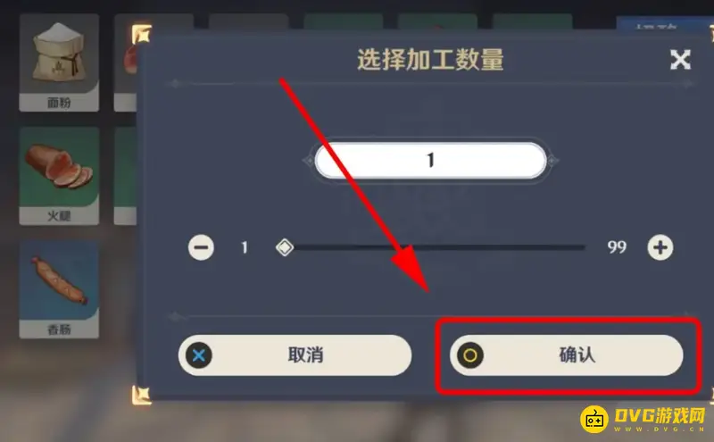 3、选择烹饪数量,一次性可烹饪99个。选定并确认烹饪。