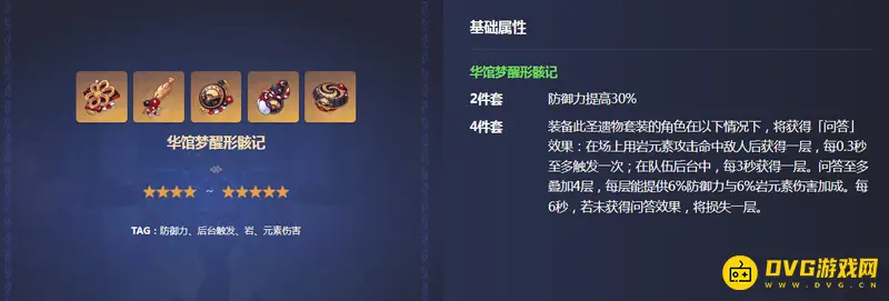 「华馆梦醒形骸记」两件套和四件套效果同时提供诺艾尔最需要的防御力,同时其四件套效果提供岩元素伤害加成。是当前版本下满命诺艾尔输出期望最高的圣遗物套装。
