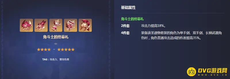 「角斗士的终幕礼」获取途径较多,四件套效果提高使用双手剑的角色的普通攻击伤害,十分契合诺艾尔的输出方式。虽说相比华馆梦醒形骸记套装圣遗物护盾量会稍显逊色,但输出能力并不比流星套差。在副词条比较极品的情况下亦可作为毕业套装使用。