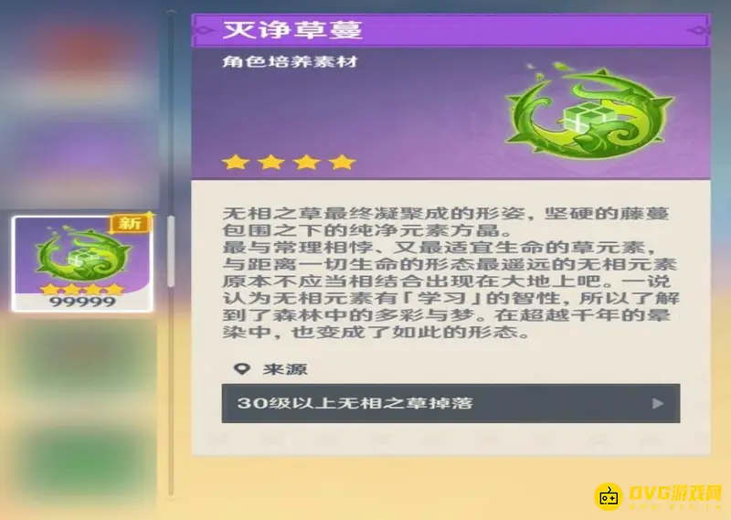 灭诤草蔓主要通关击杀30级以上的无相之草掉落,无相之草的等级越高,掉落的数量也越多。