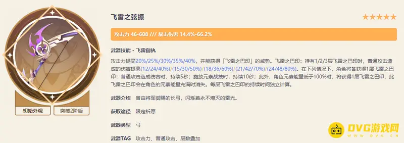提纳里能吃到飞雷弓的暴伤副词条属性,也能吃到武器特效20%攻击力加成;但另一个很重要的武器特效吃不到,那就是普攻伤害,毕竟提纳里主要是靠蓄力重击和大招打伤害,普攻增伤毫无意义。