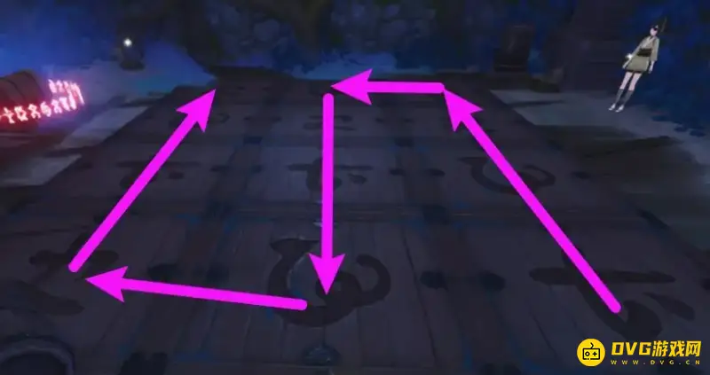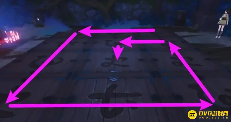 三、从NPC所占位置的地板开始向左侧直走,一直踩踏至中间位置即可,如下图所示;