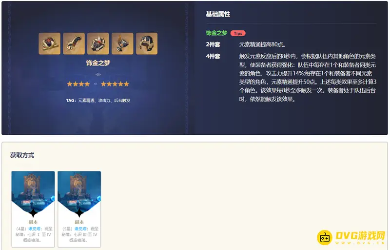 饰金之梦圣遗物:缘觉塔秘境3~5概率掉落;深林的记忆圣遗物:缘觉塔秘境概率掉落。流浪大地的乐团:世界等级3及以上周本BOSS概率掉落;深境螺旋6-8层深秘圣物匣·一等;合成台可用任意三件五星圣遗物合成一件。