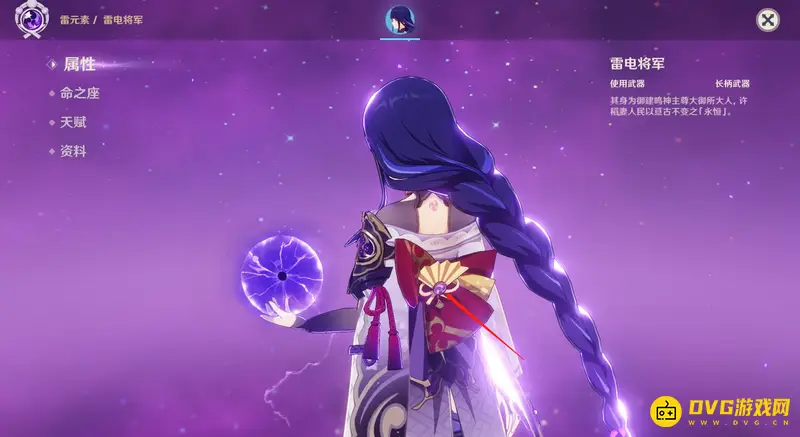 雷电将军的神之眼在她的后背上。玩家将视角调整到雷电将军的后方,在她的后背就可以看到她的神之眼,一般会被头发给遮挡住,当雷电将军做动作时就可以看的很清楚。