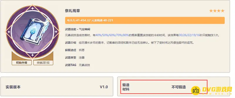 不可以锻造,只能进行突破。满级后元素精通是能够到达221的,而且这把武器是可以帮助我们的技能cd进行重置的哦,是能够让我们的草神的子技能能够连续释放两次的,因为草神的子技能基本上只有5/6秒,所以我们基本上是可以进行连续释放的。