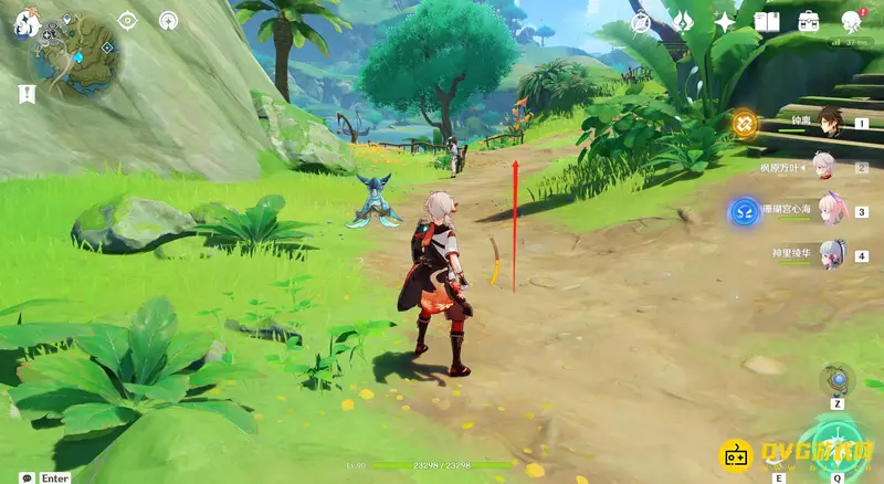 4、行走一段距离后会看到NPC古尔根,这时转动视角至北方向,沿着路径前进。