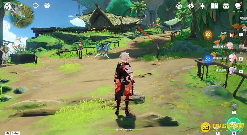 9、走到岔路口的位置看向西北方向,这时会看到一间草屋,去到草屋后方的山坡上。