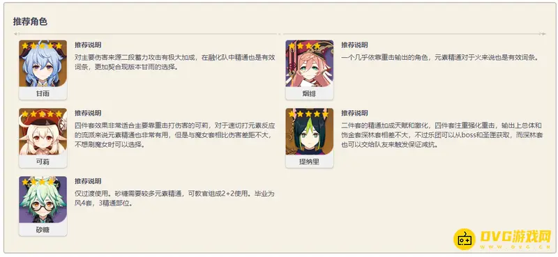 而可莉、砂糖、提纳里虽然可以用,但是不能作为毕业圣遗物,至多只能是过渡,毕竟重击并非是主要的他们的主要输出方式。