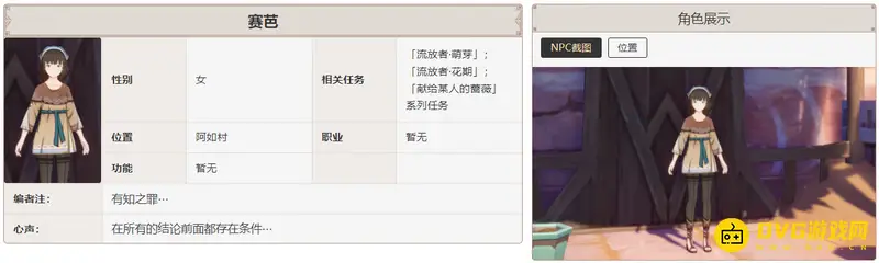 原神的赛芭在须弥沙漠阿如村,赛芭相关任务:「流放者·萌芽」;「流放者·花期」;「献给某人的蔷薇」系列任务。