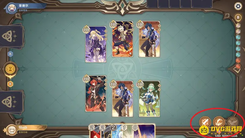 1、「投掷阶段」,双方获得8个元素骰子,进行投掷。