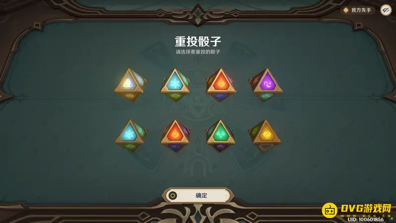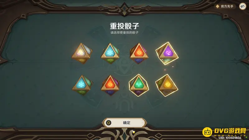 每次投掷元素骰子,都有一次机会重投骰子,可以选择不需要的元素骰进行重投(选择重投的骰子会显示高亮)。