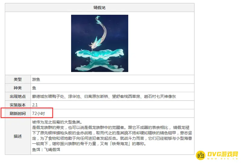 原神3.2版本的青龙鱼指的是锖假龙,它的刷新时间是72小时,也就是三天。锖假龙的出现地点:蒙德城东喂鸭子处、渌华池、归离原东断桥、望舒客栈西草房、越石村七天神像东。