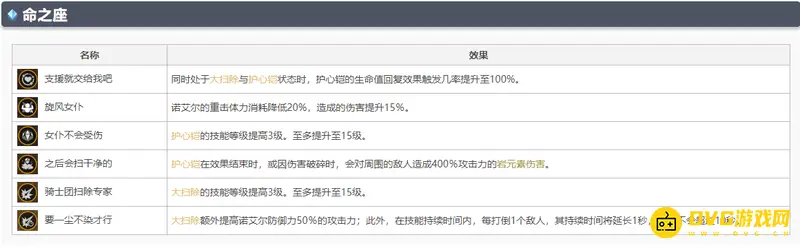6命可以当主c。6命诺艾尔就蜕变成为一名合格的主C,高额面板(防御转化)的加持下,哪怕自身倍率低也能变成数值怪,6命诺艾尔的防御转化加成极高,自身2000以上的防御(带赤角或者白影轻松过2000)开大可以有4000以上的攻击,配合双暴能打出不俗的伤害。