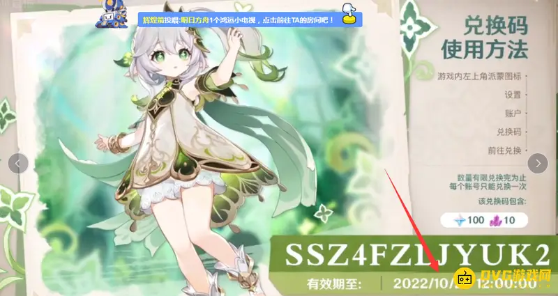 原神3.2前瞻直播兑换码2022/10/24 12:00:00过期。在原神游戏中,3.2前瞻直播特别节目将为大家带来3.2版本的更新内容,直播间内还有兑换码等福利“掉落”。