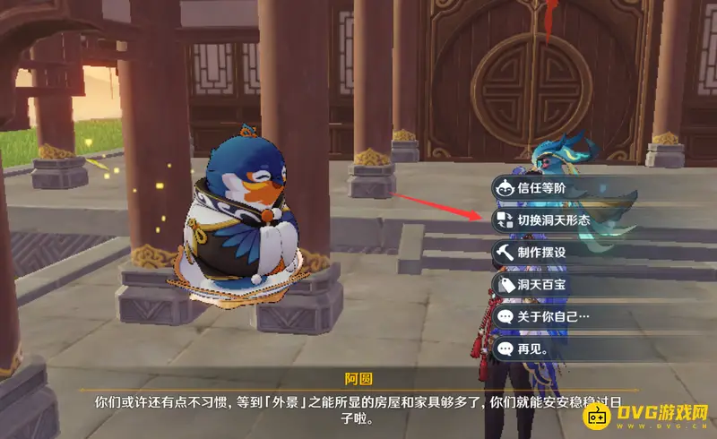 切换洞天形态。首先玩家进入洞天,来到壶灵阿园身边,进行对话。