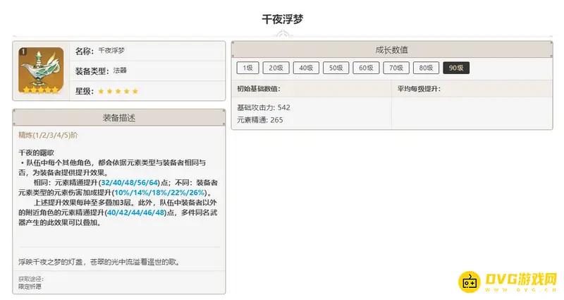 2、排名第二的是千夜浮梦,满级后增加265点元素精通,精炼五的情况下还可以在满足配队要求还可以贼次提升64点元素精通,最高可以加成329点元素精通。