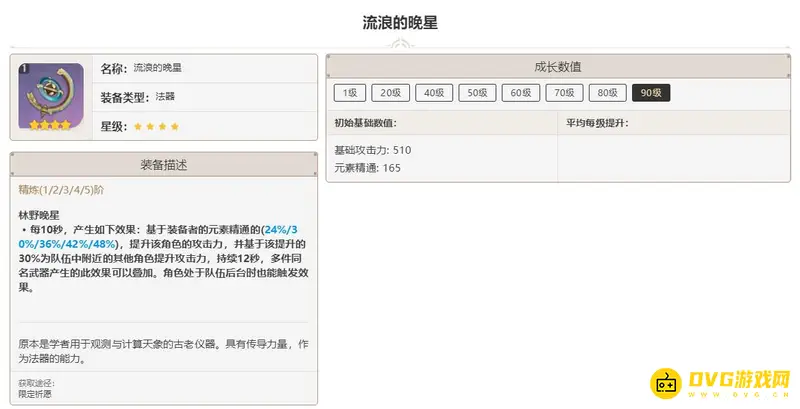 5、排名第五的是流浪的晚星,满级可以增加165点元素精通。