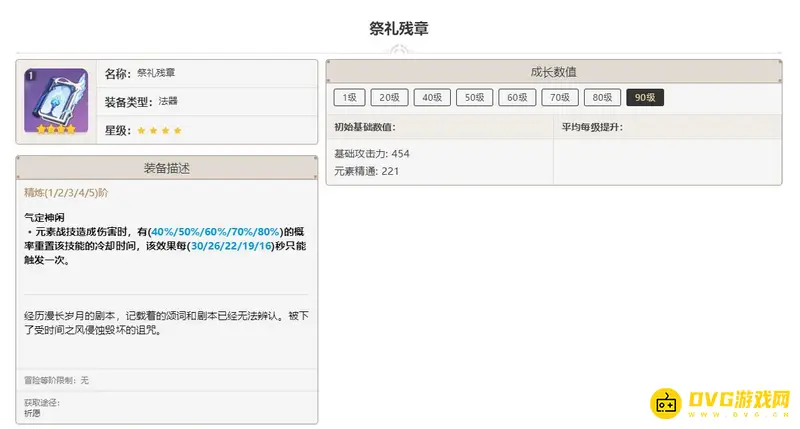 3、排名第三的是祭礼残章,满级可以增加221点元素精通。