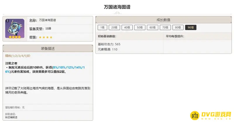 6、排名第六的是万国诸海图谱,满级后可以增加110点元素精通。