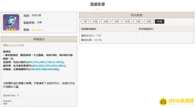 1、流浪乐章虽然是四星法器,但是触发间奏曲后在精炼五的情况下可以增加480点元素精通,虽然只有十秒,但是这个加成是其它法器望尘莫及的,缺点是触发条件太苛刻。
