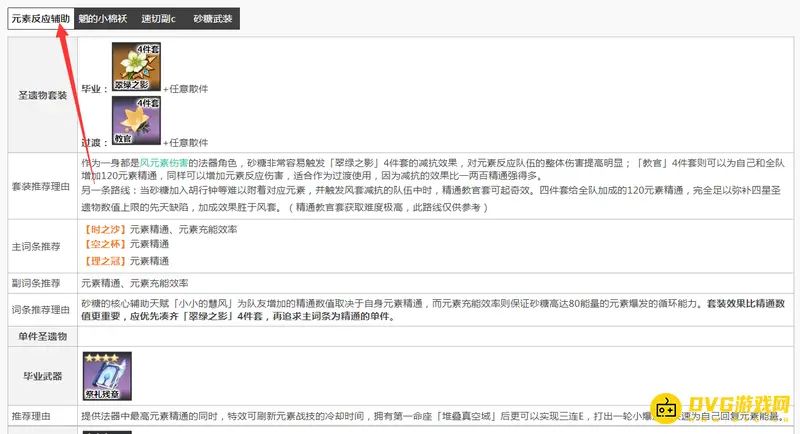 砂糖作为元素反应辅助,主要堆元素精通、元素充能效率,砂糖的核心辅助天赋「小小的慧风」为队友增加的精通数值取决于自身元素精通,而元素充能效率则保证砂糖高达80能量的元素爆发的循环能力。