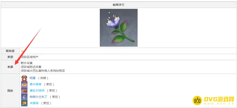 原神帕蒂沙兰可以在须弥城附近采集,也可以在须弥城大巴扎香料商人朱特处购买。帕蒂沙兰是稀有度为一星的须弥区域特产,可以用于妮露突破或制作料理。