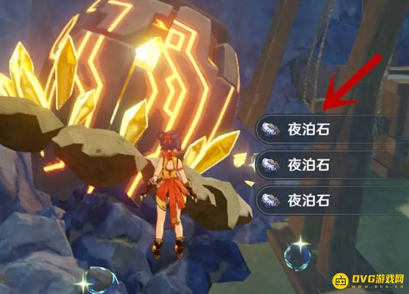 接着就会掉落夜泊石,捡起来就能放进背包了。