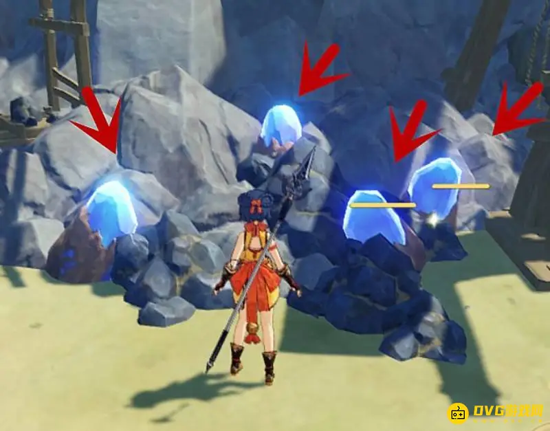 打败附近的丘丘人后,就可以看到很多夜泊石矿,然后对着夜泊石矿放技能攻击。