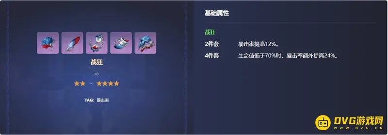 适合所有输出类型的角色。严格来说这套圣遗物高额的暴击率加成适合任何输出角色。如果是五星将永久改变整个游戏环境,因此注定只能是四星。圣遗物效果是2件套暴击率提高12%,4件套生命值低于70%时,暴击率额外提高24%。