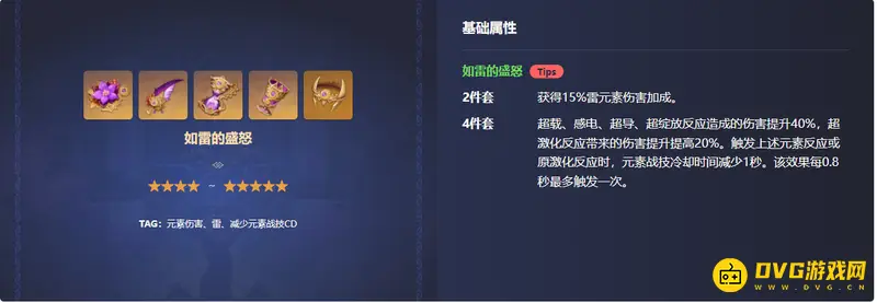 如雷的盛怒4件套则提供雷元素伤害加成和反应伤害加成,能够频繁触发4件套效果多次使用元素战技,极大提高战斗的灵活性,但伤害上限可能略低于其他套装。