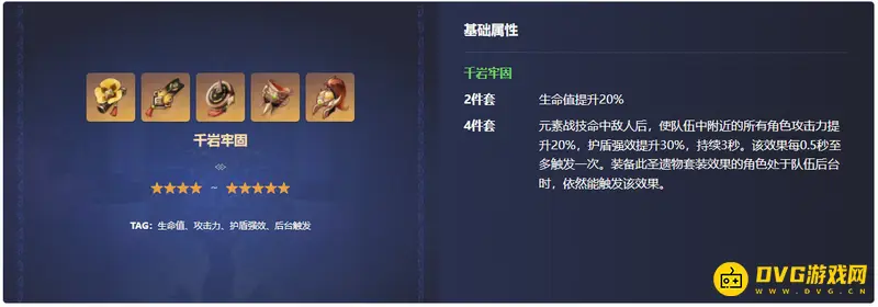 由于妮露的固有天赋翩舞永世之梦会基于妮露自身的最大生命值提升固有天赋折旋落英之庭产生的特化草原核丰穰之核的伤害,因此圣遗物套装首选二件套可以增加角色最大生命值的千岩牢固。