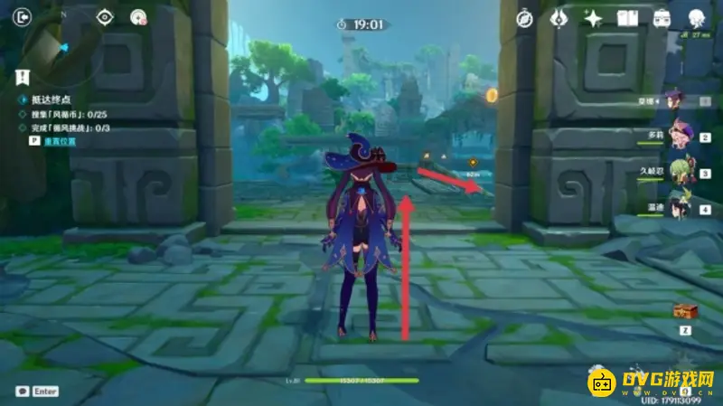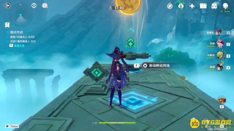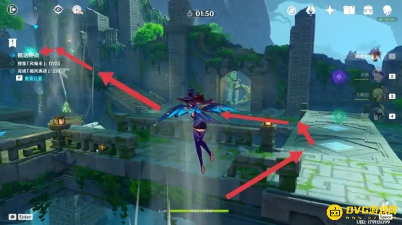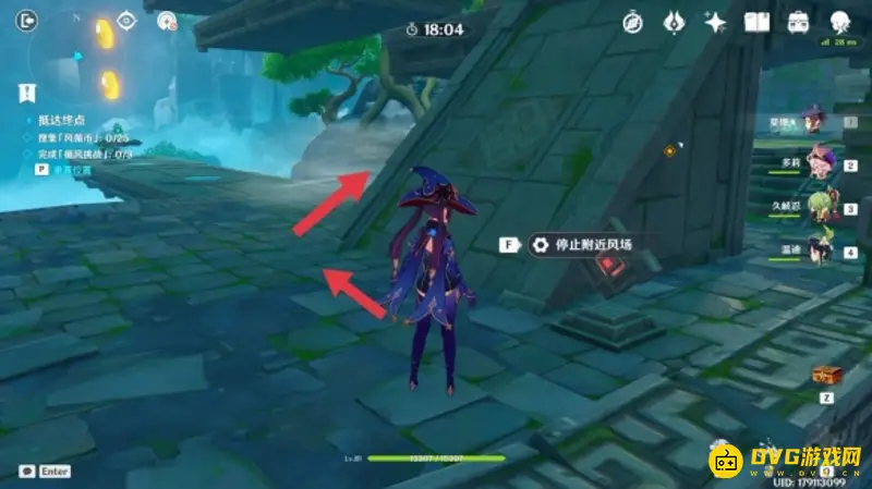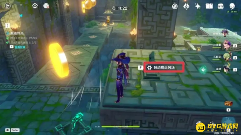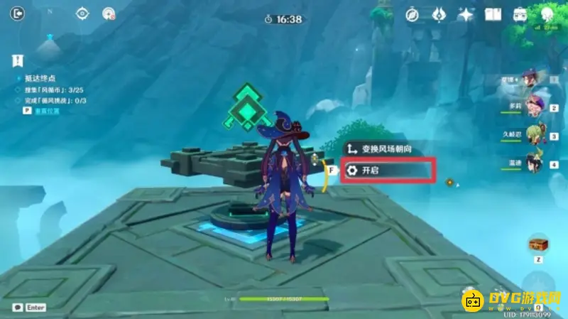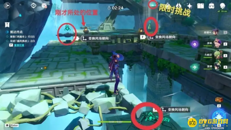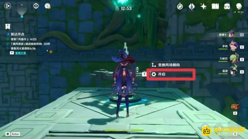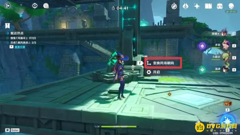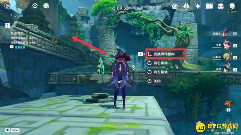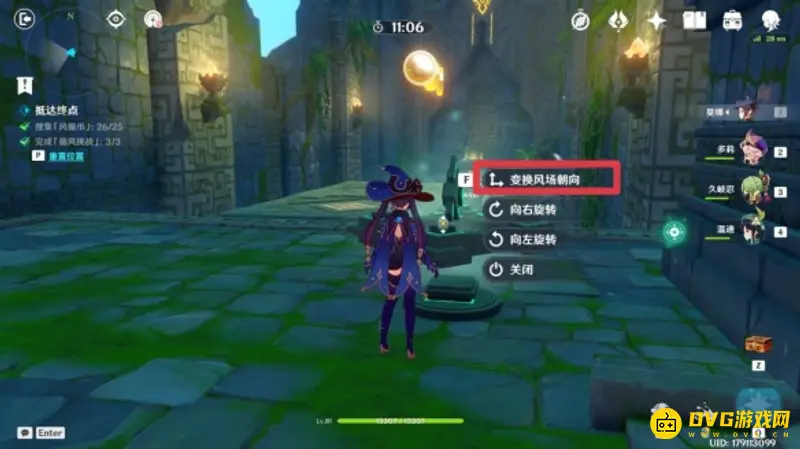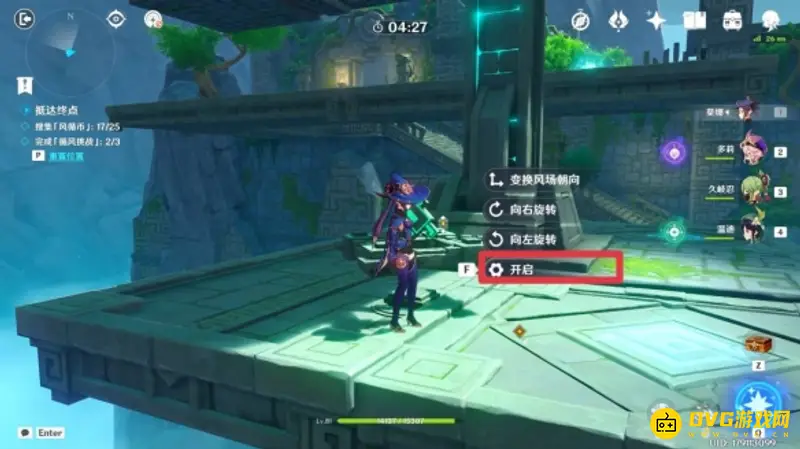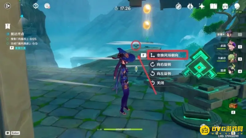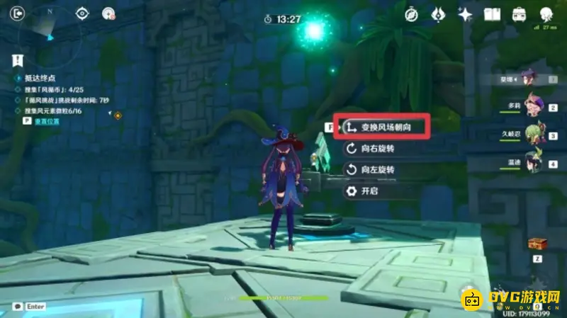 4、点击变换风场朝向,迅速赶往对面「鼓风枢」机关。