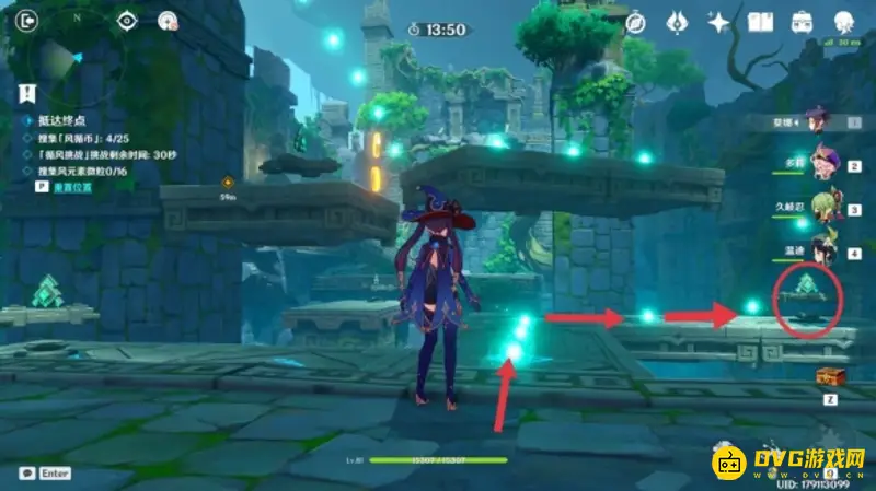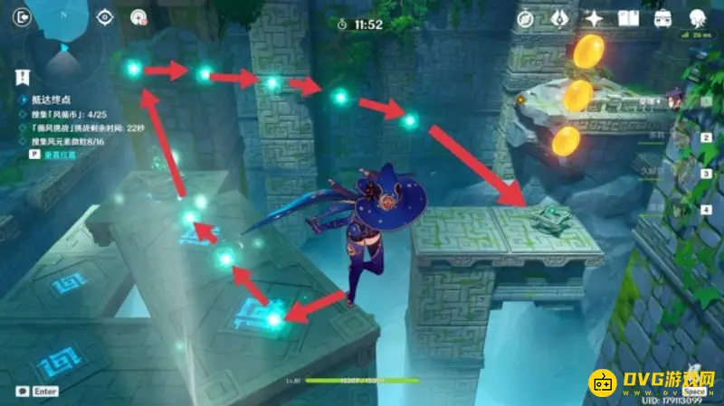 24、完成挑战,向前走吃3个「风循币」,接着往右手边进。
