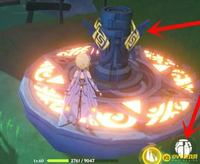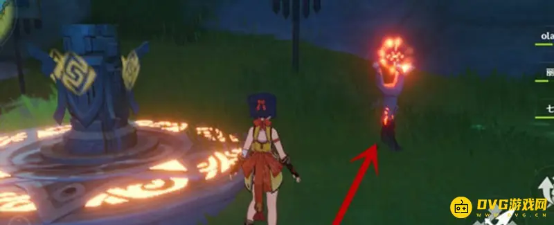 1、来到无妄引咎密宫附近,用火元素去点亮火柱子。