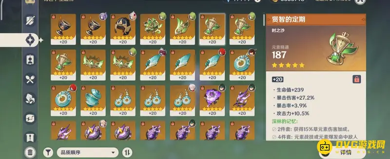 满级精通沙可以增加187点元素精通。比如深林的记忆套装中的精通沙,玩家将其升到满级后,所能增加的元素精通就为187点。